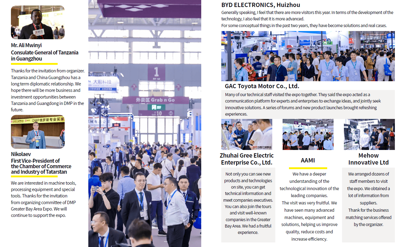 As an integrated mega industrial event, 2023 DMP Greater Bay Area Industrial Expo used 12 exhibition halls of Shenzhen World Exhibition & Convention Center with an exhibition area of 240,000 sqm, exhibiting CNC machine tools, robots & automation, machine tools accessories, intelligent manufacturing systems, precision moulding, die-casting, precision measuring, mould manufacturing, new metal materials, showcasing new technologies, new trends and integrated solutions, acting as a platform for manufacturers to explore business opportunities.