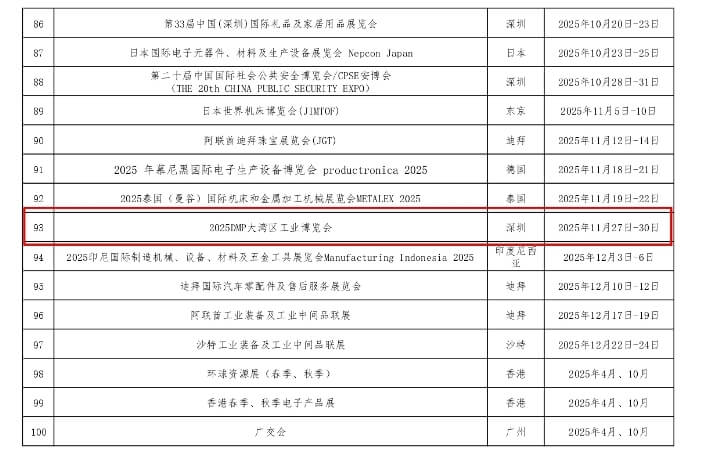 2025年1月20日,广东省商务厅关于2025年企业拓展市场推荐目录的通知,2025DMP 大湾区工业博览会入选2025年企业拓展市场推荐目录。