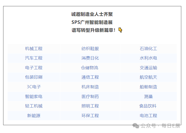 2025年,广州国际智能制造技术与装备展览会(SPS广州展)将秉承“深耕工业自动化,成就多元产业应用”的品牌理念,聚焦于传感技术、驱动系统及运动控制、机械基础设施、控制技术、工业软件和IT、连接技术、工业机器人、项目集成与服务、工业通信、智能装备及系统集成、人机界面装置、工厂自动化等领域。同时,展会还将结合数字化转型发展和智能制造的趋势,推动制造业向数字化、网络化、智能化方向迈进。本届展会规模宏大,展览面积达50000平方米,拟邀请来自全球80多个国家和地区的700余家工业自动化与智能制造领域的领军企业、超过50000名专业观众以及100多个专业买家团队共襄盛举
