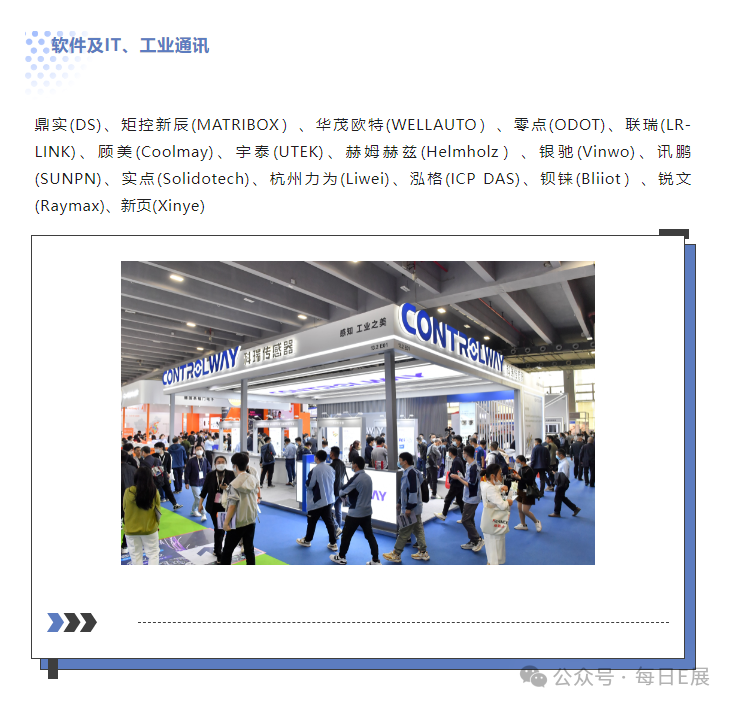 (二)自动化专馆:传感技术、机器视觉、工业软件及IT,工业网络和现场总线系统、数控系统、工业数字化、工业智能、智能化运维、PLC、工控机、变频器、伺服电机、人机界面、传动技术、驱动系统、分布式远程IO、嵌入式系统、运动控制、测量和测试系统、智能传感器、机械基础设施等