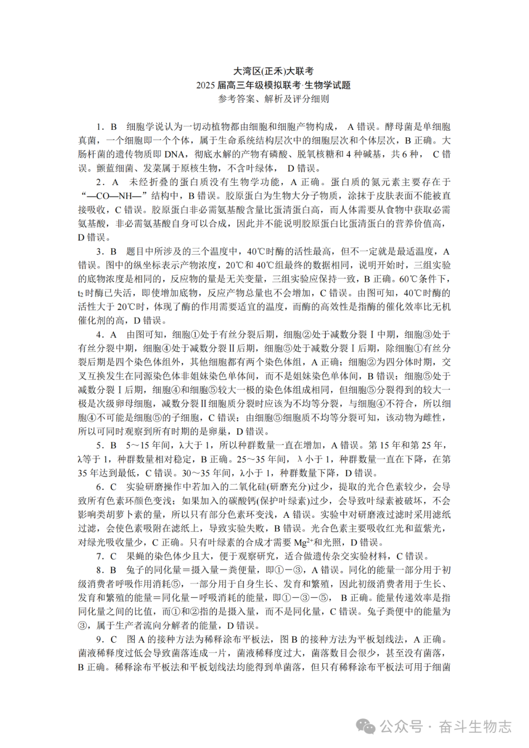 广东省大湾区2025届高三年级上学期模拟联考(生物PDF版)试卷+答案