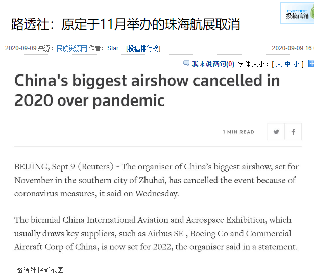 本来2020年年底的珠海航展或将成为疫情之后的年度唯一航空航天展。可环球时报的这一报道无疑给了航空迷及国际航空航天业带来令人难以置信的失望,更不用说我们重要的参展商、供应商和参观者了。