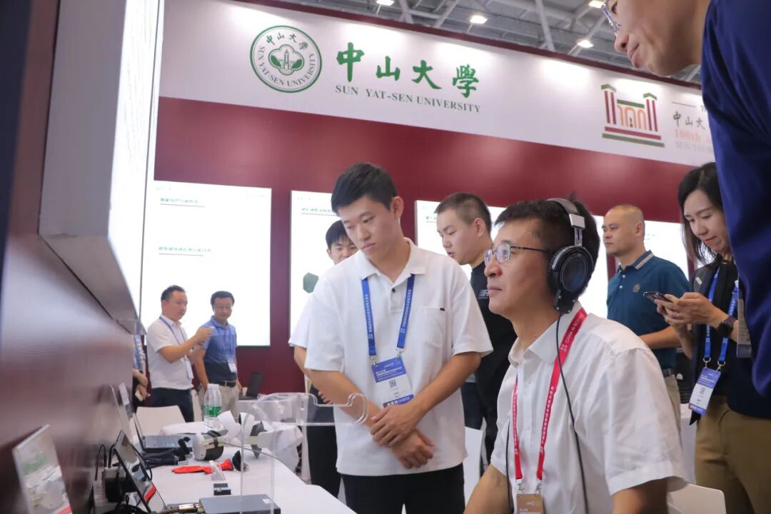 开幕式当天,中山大学副校长邰忠智一行赴展台巡馆,听取项目代表介绍,观看操作演示并体验产品。