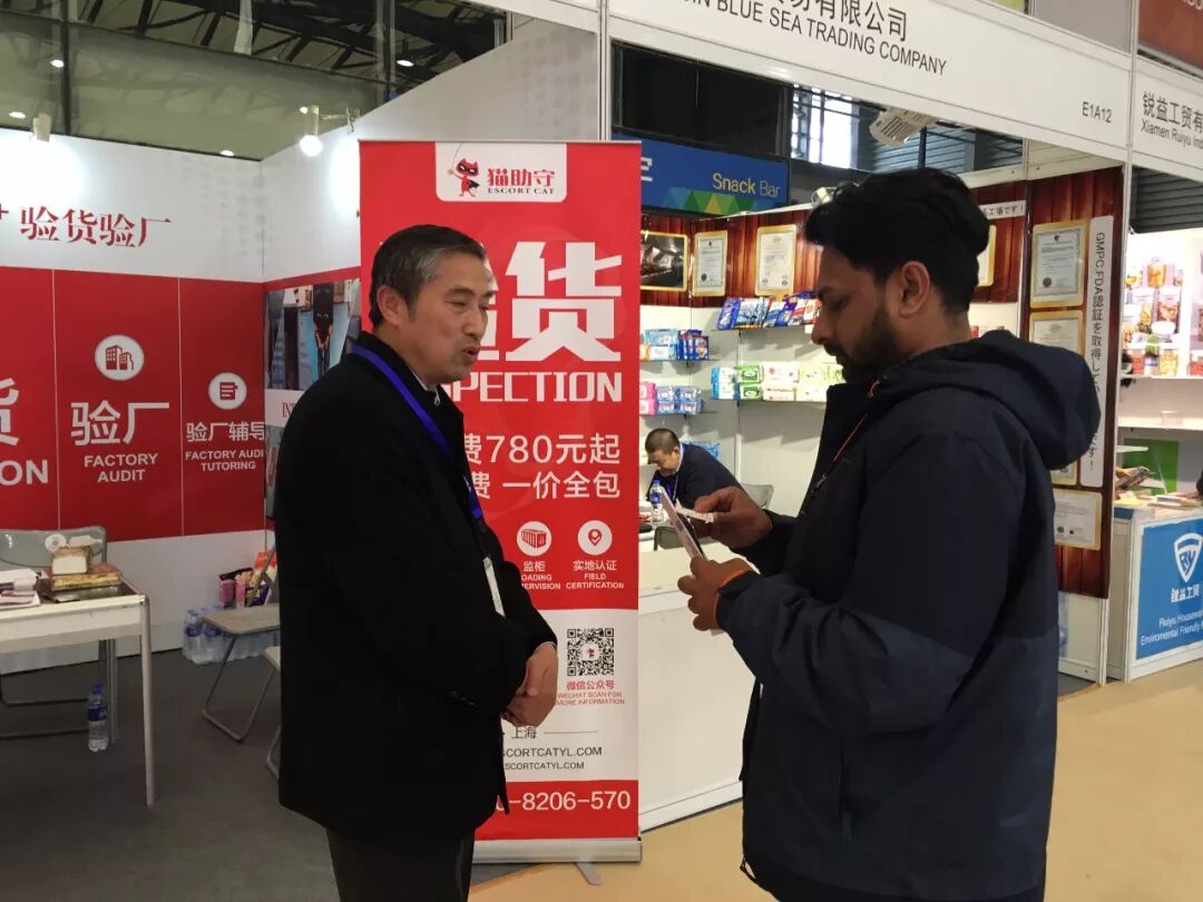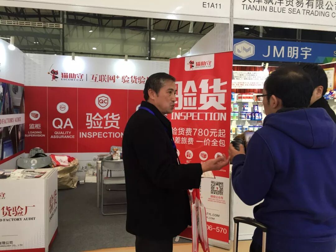 不仅仅是外表,猫助守新颖的工作模式一样吸引了大批的贸易粉丝,来自苏州的陈先生在路过猫助守展位的第一时间就被吸引住了,详细的询问了猫助守在验货服务过程中如何避免一些“行业漏洞”的问题。