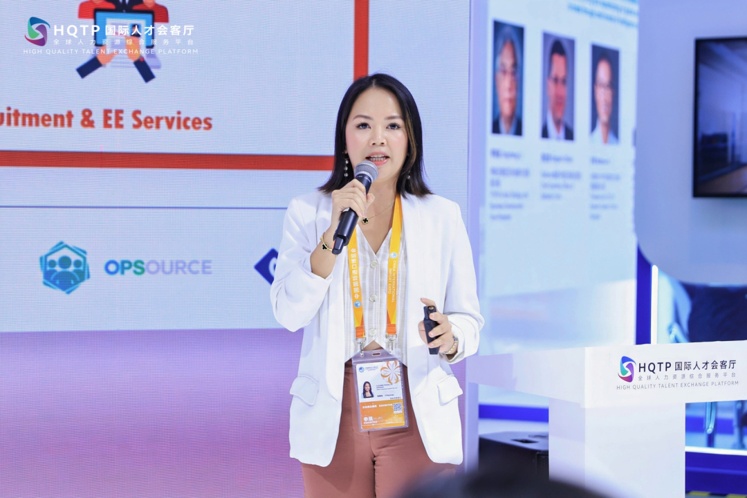 继2024年11月6日、7日的SGET走进2024“进博会”系列活动之后,2024年11月8日,是SGET世智人力在进博会期间非常特别的一场活动,这场活动充分体现了“创新发展”的主题,旨在推动全球人才价值链、产业链发展,提高国际化综合能力和跨文化能力等,助力企业出海入华业务的成功。东南亚和欧洲作为两个重要的经济区域,各自具有独特的资源和市场优势。本次活动邀请多位专家,通过专题活动与战略签约,促进两地之间的经济合作和人才流动。在主题活动上,国际企业领袖们探讨了东南亚和欧洲地区在人才和用工方面呈现出不同的趋势和特点,有效整合国内外人力资源市场需求,为推动全球海外人才及用工趋势助力。首先,OPSOURCE PH首席运营官兼总裁 Ileanne Arango女士以“数字化转型塑造当今的商业转型模式”为主题进行演讲,结合东南亚市场变化,强调了技术发展趋势和数字化转型为企业带来的前所未有的发展机遇。数字化转型是指企业利用数字技术来推动业务变革、创新以及提升竞争力。OPSOURCE PH提供必要的专业知识、技术解决方案和战略指导,帮助企业成功实现数字化转型。这些伙伴不仅帮助企业理解数字化转型的潜力,还帮助企业制定并执行一个全面的数字化转型计划,以确保转型的成功。