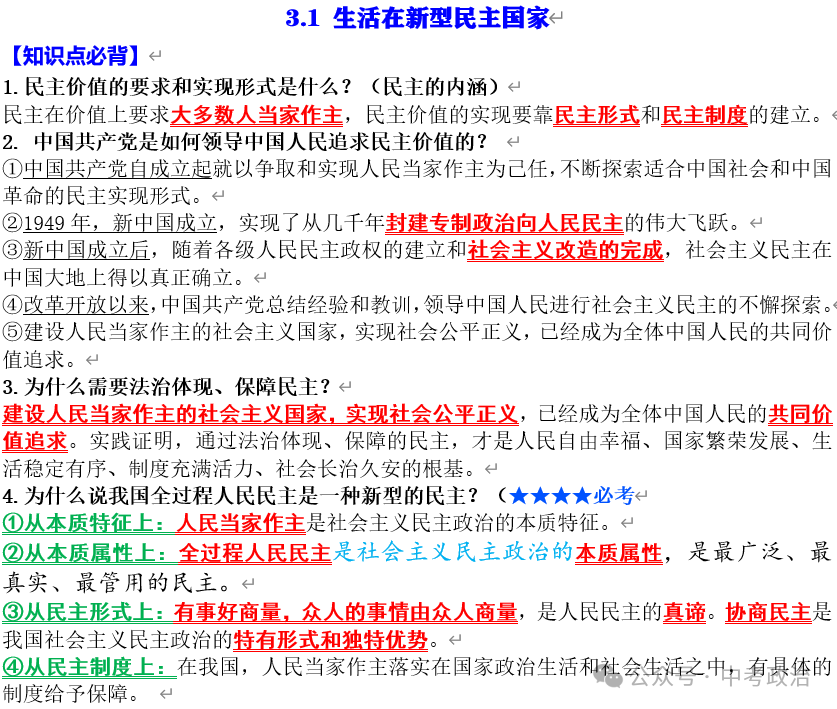 2025年中考道法时政热点专题18:全过程人民民主重大理念提出5周年