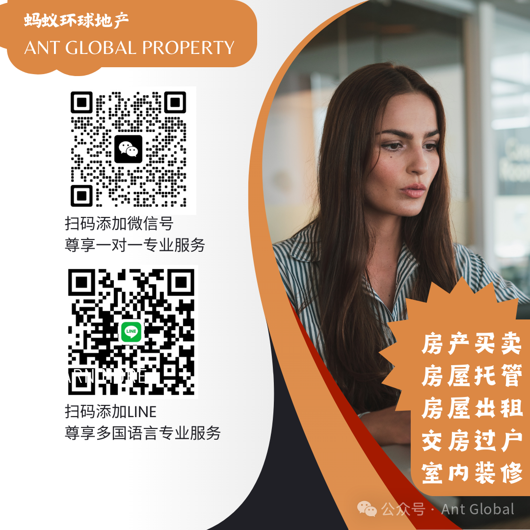 更多泰国一手房源信息,二手转售出租资讯,扫一扫,关注蚂蚁环球地产