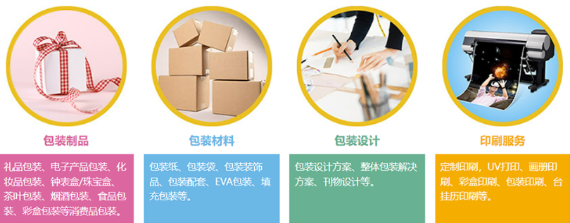 纸质包装、塑料包装、木质包装、金属包装、皮质包装、布料包装