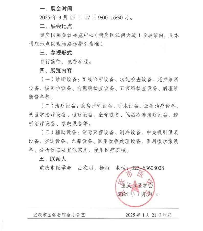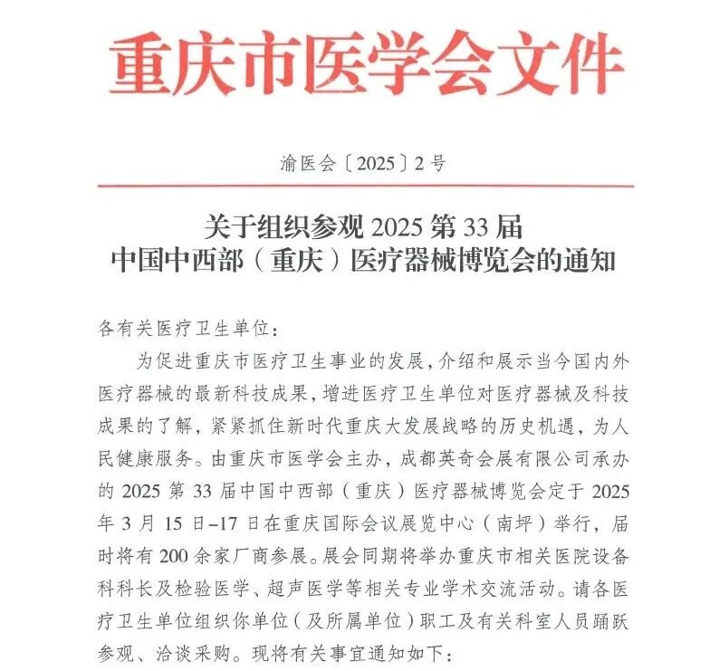 重庆市医学会关于组织参观2025第33届中国中西部(重庆)医疗器械博览会的通知