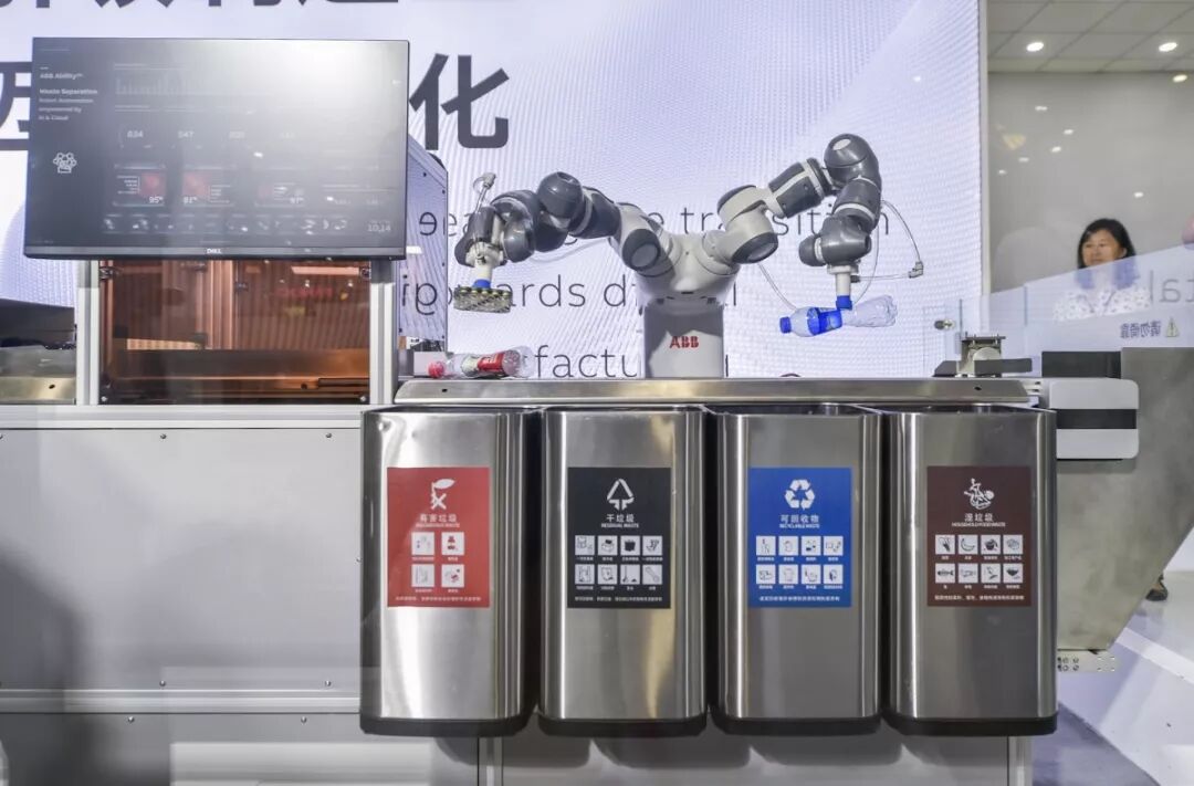 在机器人展区,工博会的国际范更加明显。ABB、库卡、发那科、安川等国际知名机器人品牌擂台戏唱得火热。这边,ABB开发了一套垃圾回收解决方案,通过机器人、计算机和传感器结合的神经网络技术,可以像人脑一样对垃圾进行分类和拣选;那边,安川机电展位上,色彩鲜亮的机器人围绕着两台汽车车身高速运作,喷涂机器人、开门机器人等四款不同的机器人共同完成商用车白车身的喷涂作业。机器人动作流畅,配置密集。国际展商纷纷感叹,工博会的机器人展已经成为亚洲乃至全球最具规模和影响力的机器人专业展之一