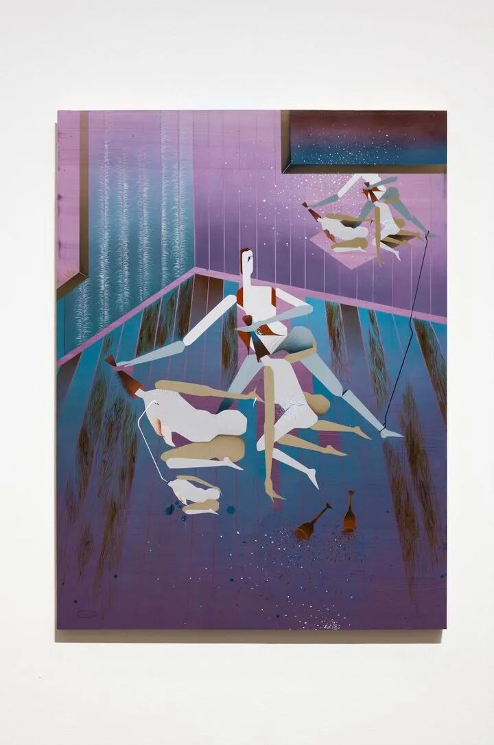 Maryam Hoseini, Anxiously One on One (2022). Acrylic, ink, and pencil on wood panel. 101.6 x 76.2 cm. Courtesy the artist and Green Art Gallery, Dubai. Photo: Anna Shtraus.