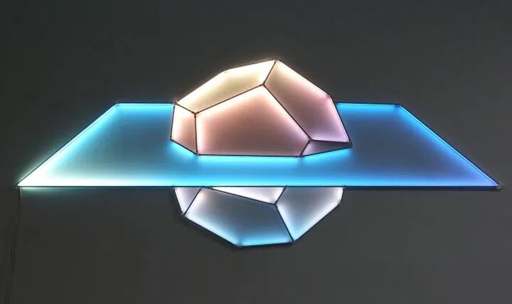 James Clar, Half Submerged (2022). LEDs, filters, aluminum, 3D printed parts. 70 x 180 cm. Courtesy Silverlens.