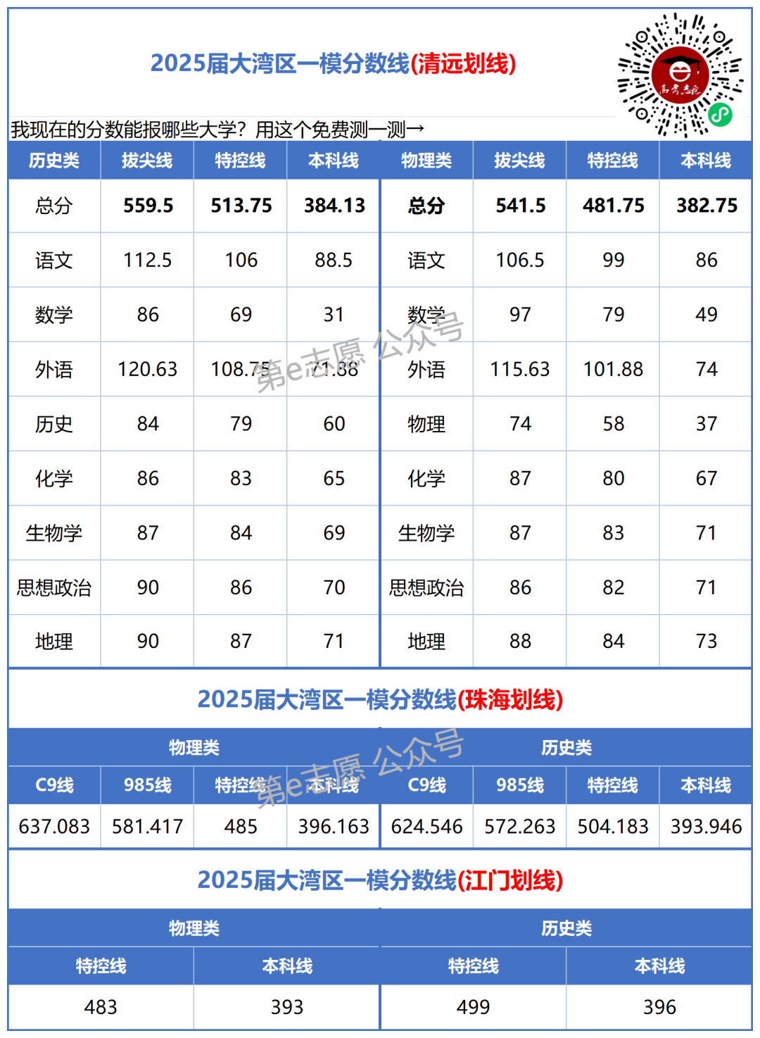 惠州三调、大湾区一模、肇庆二模、茂名一模等多地公布分数线了,一起来看👇