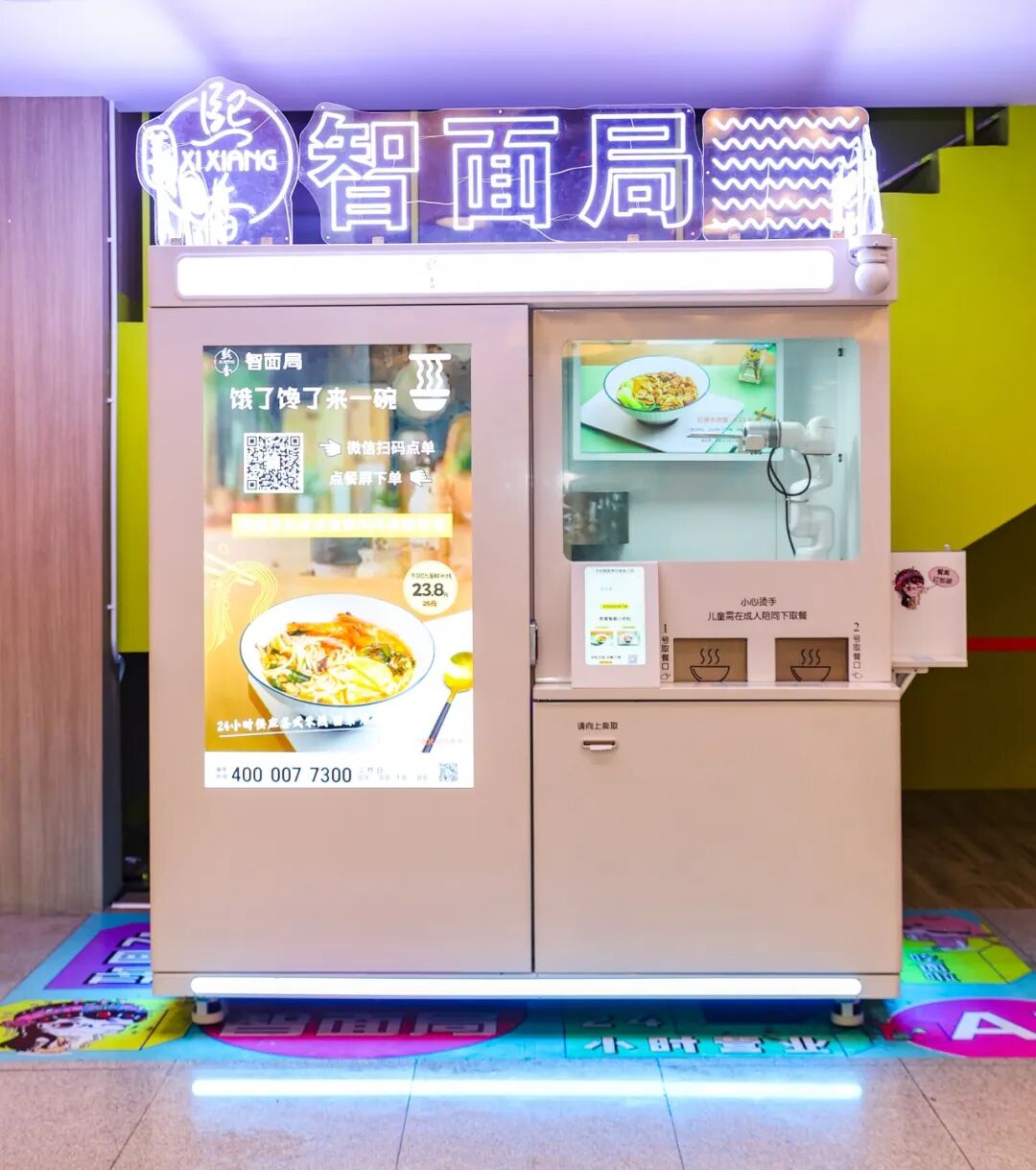 智能小吃机被评为上海市高新技术成果转化项目并取得食品经营许可证,占地面积仅 2 平方左右,采用“AI物联网+小吃”的设计思路,将多样化的小吃非标理念进行革新,集储藏、接单、烹饪、打包、叫号、智能后台等功能于一体,打破营业时间限制,支持24小时营业,实现小吃规模化、连锁化经营。餐品包含盖浇饭、米线、面条、麻辣烫、小馄饨、花式蒸点等多种品类。
