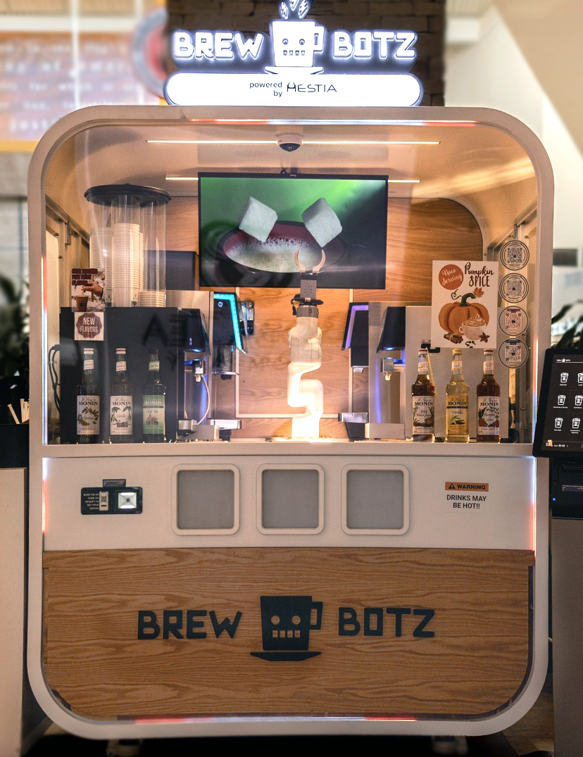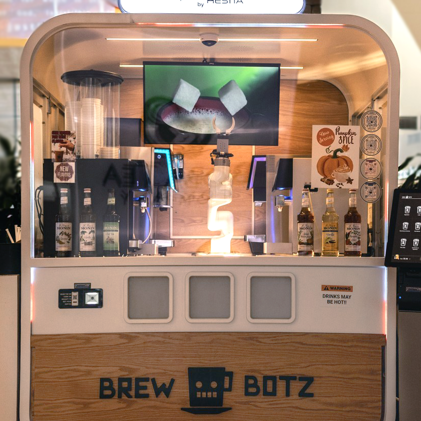 拉花大师B系列产品以独特的吧台款式成为咖啡角的视觉焦点。两个机械臂同时运行,巧妙呈现出精致的拉花技术及定制化的图案打印,占地小巧,适应各种场景空间。