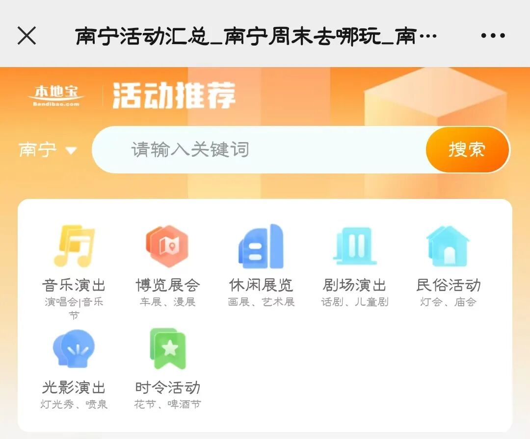 南宁本地宝上线了【南宁活动汇】栏目,专门搜罗南宁各种活动,有演唱会、休闲展览、博览展会、光影演出等等~具体内容如下!