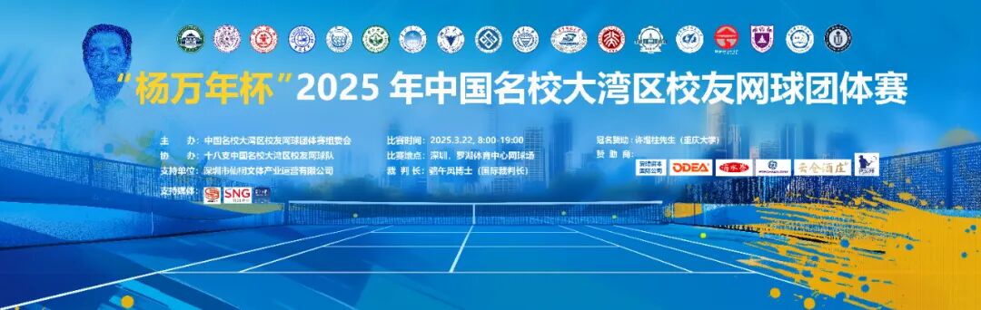 赛事正式名称:“杨万年杯”2025年中国名校大湾区校友网球团体赛。