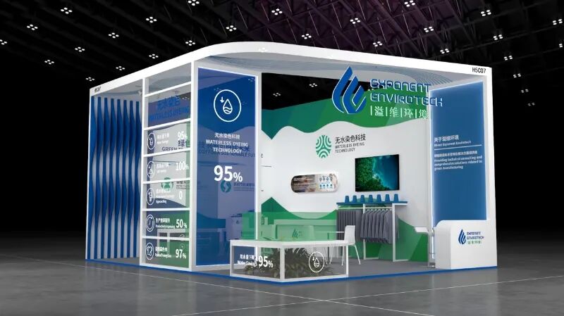 此次展位包含无水染色、靛蓝在线回用、烘筒节能改造三大展区,每个展区特色鲜明,充斥绿色科技的魅力,展示出溢维环境在染整领域的创新成果和对可持续发展的承诺。