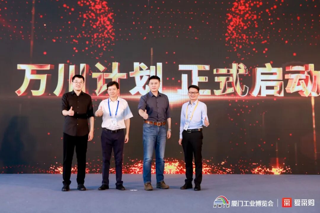 随后,王莎莎现场发布中小企业生态发展计划——“万川计划”, 艾瑞咨询首席分析师、研究院执行院长李超、厦门国贸飞驰会展有限公司总经理黄国才、百度B2B业务商务负责人陈真、德邦快递厦门大区总经理陈小军作为“万川计划”生态成员代表,共同参与“万川计划”启动仪式。此举标志着爱采购将承担作为B2B采销大平台的社会责任,携更多生态伙伴力量,响应国家号召,共同帮扶中小企业高质量发展。
