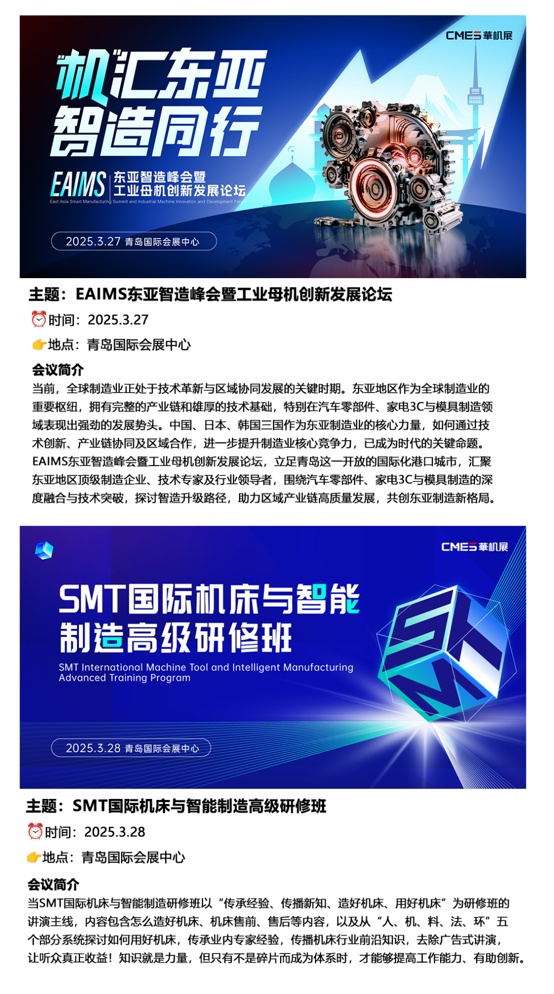 2025年青岛国际机床展将于3月27-29日在青岛国际会展中心[红岛馆]举办。为顺应科技革命和产业变革的趋势,2025CMES华机展|青岛国际机床展划分金属切削机床、磨削工量具、机床附件、工业自动化及机器人、金属成形机床五大主题展区,以“智造”重塑制造,极力撬动制造业更高质量的发展。
