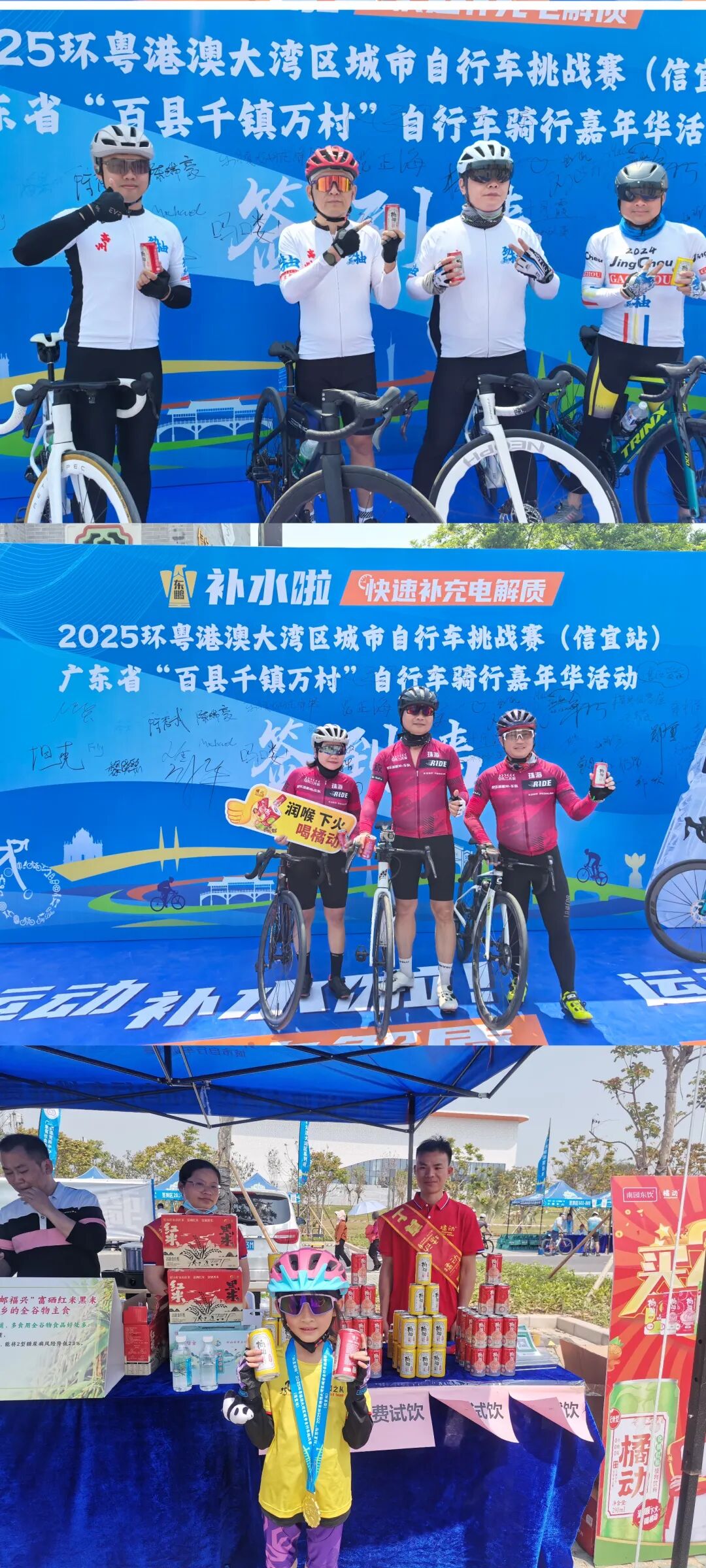 2025年环粤港澳大湾区城市自行车挑战赛(信宜站)及广东省“百县千镇万村”自行车骑行嘉年华活动于2025年3月23日在我市举行,此次赛事由中国自行车运动协会、广东省社会体育和训练竞赛中心、信宜市人民政府主办。橘动化橘红植物饮料作为中途“补给站”的一员,为这场赛事增添了别样的健康活力元素。