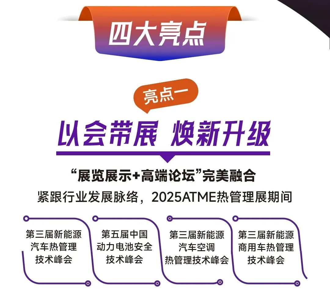 2025上海新能源汽车热管理展将于2025年3月26日-28日在上海汽车会展中心重装上阵!作为汽车OEM行业灯塔展会,本次展会将吸引超100+展商加入,展览规模将达6000平方米。展会将吸引来自整车厂商(乘用车及商用车)、T1总成(空调总成等)、新能源三电供应商、热管理零部件供应商、热管理系统供应商、新能源三电供应商、材料供应商及院校/科研/协会等专业观众前来参观。致力于为新能源汽车热管理相关领域呈现一场集创新技术、前沿产品和学习交流于一体的盛宴。