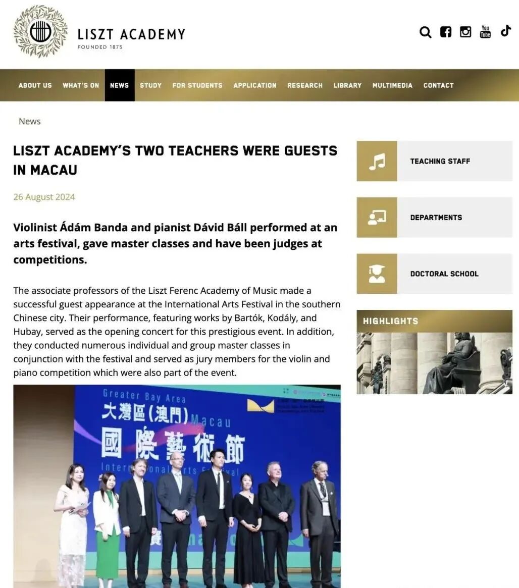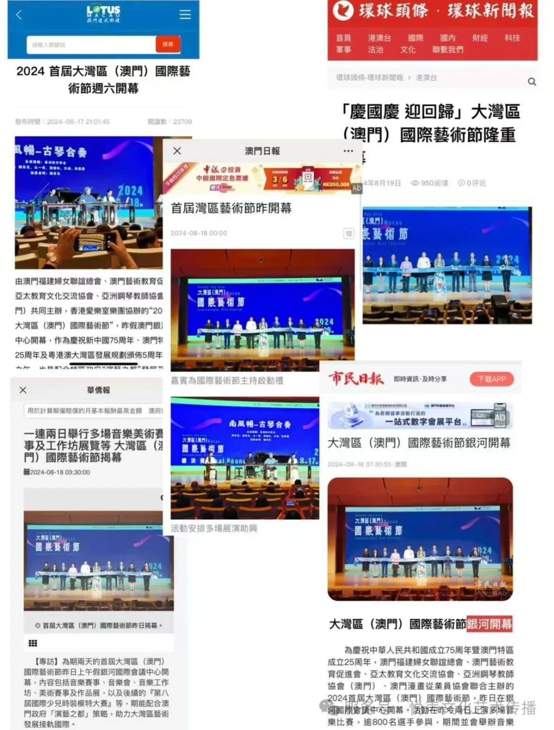 慶祝中華人民共和國成立七十五週年華誕曁澳門特别行政區成立二十五周年之際,由澳門福建婦女聯誼總會、澳門藝術教育促進會、亞太教育文化交流協會、亞洲鋼琴教師協會(澳門)、澳門漫畫從業員協會聯合主辦,香港愛樂室樂團、古琴文化推廣協會、ESTA歐洲音樂教師協會、香港聯校音樂協會協辦的2024首屆大灣區(澳門)際藝節。