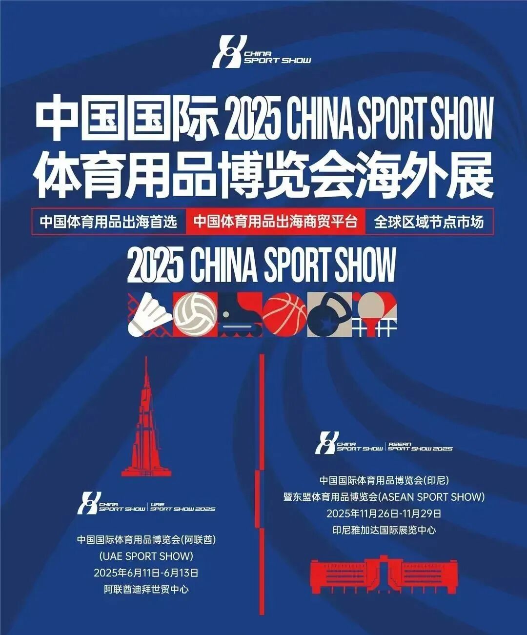 2025年,中国体博会组委会、浙江米奥兰特商务会展股份有限公司、中体联(北京)体育产业发展有限公司将共同主办2025中国体博会(印尼)-东盟展、2025中国国际体育用品博览会(阿联酋),致力于推动中国体育用品品牌的国际化进程,并加深与东南亚、中东及周边国家在体育产业方面的交流与合作,协助中国体育用品企业深度开拓“一带一路”新兴市场。