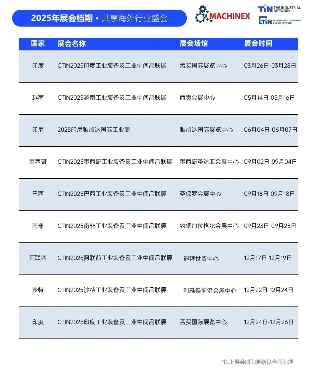 为助力中国企业更高效、更精准开拓全球市场,2025年,米奥兰特将在全球五大洲超15个全球区域节点市场主办中国出口品牌联展暨各大行业专业展,超90场行业专业展齐聚,深度助力中企拓市场,抢订单!