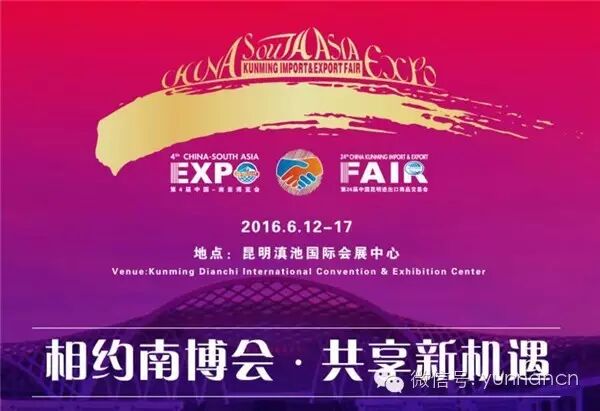 第4届中国—南亚博览会暨第24届中国昆明进出口商品交易会定于2016年6月12—17日在云南昆明举办,会期较往届增加一天。6月12日上午为开幕式,12日下午和13日专门安排了1天半的专业观众参展洽谈时间,6月14—17日面向社会公众开放。