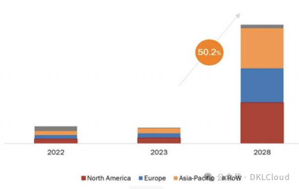 随着通用人工智能、感知和动力系统等方面取得了巨大进步,人形机器人性能得到极大提升,成本逐渐下降,部署步伐加快,相关应用场景也不断扩展,从最初的制造业到医疗、救援、服务业等各个领域。Markets and Markets 预计,2023-2028 年人形机器人市场规模将从 18 亿美元增长到 138 亿美元,年复合增长率(CAGR)为 50.2%,如图 21 所示。