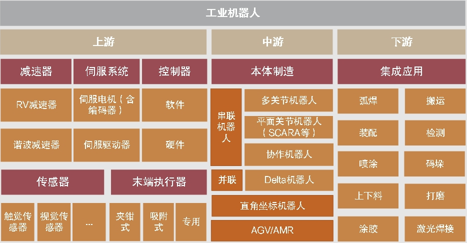 下游应用领域持续拓展。汽车行业仍是最大需求方,占比约35%,新能源电池、光伏等细分赛道增速显著。此外,食品饮料、医药等传统行业加速自动化改造,推动工业机器人向长尾市场渗透。