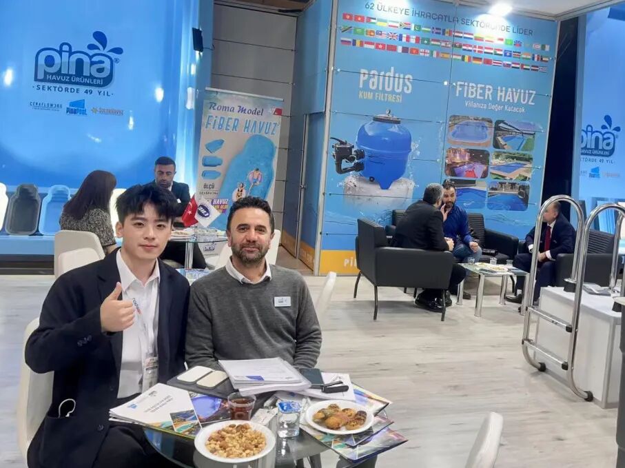 本次土耳其展会上,泳池展组委会携手展会挚友——广东卡丹丽泳池水疗设备公司、广州市芬林泳池桑拿设备有限公司、广州华希泳池桑拿设备有限公司以及广州蓝尔迪塑料制品有限公司等在国内泳池水疗设备领域声名远扬、颇具影响力的业内知名企业,一同亮相土耳其展会,充分展示中国泳池SPA行业的风采与实力,寻求更多国际商贸合作机会,共同推动泳业国际化发展。