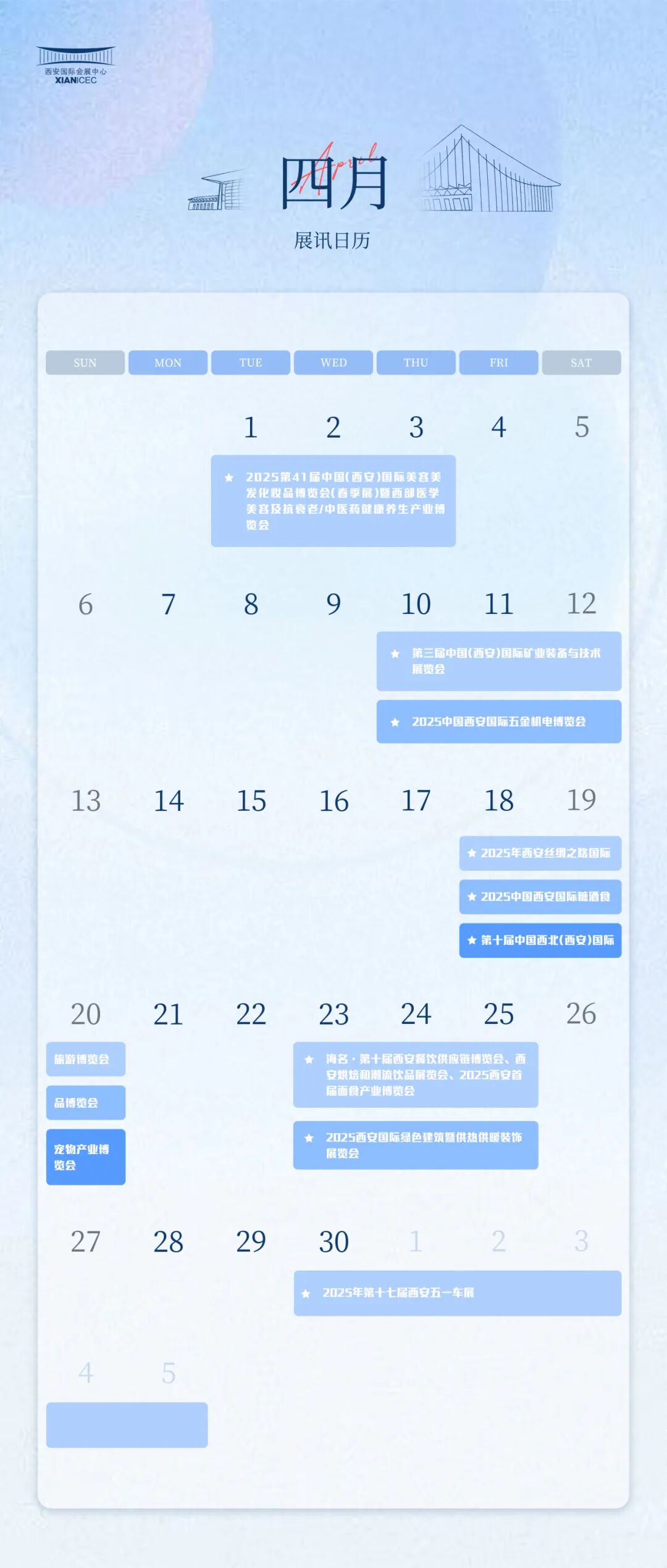 展览详情:本届大会于2025年4月23-25日在西安国际会展中心隆重开幕,届时欢迎各界人士参观指导。展会打造一个以行业交流、信息沟通、商业贸易为导向的平台,既为国外先进产品和技术的引进创造了机会,同时也为我市及陕西省其它企业了解国际市场提供了一扇窗口。