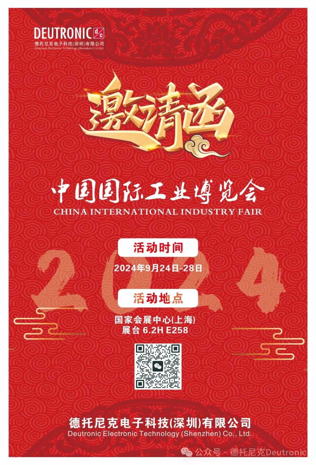 2024年9月24日到28日,在国家会展中心(上海)举办第24届中国国际工业博览会,德托尼克公司在6.2H E258展会等待您的莅临参观和洽谈