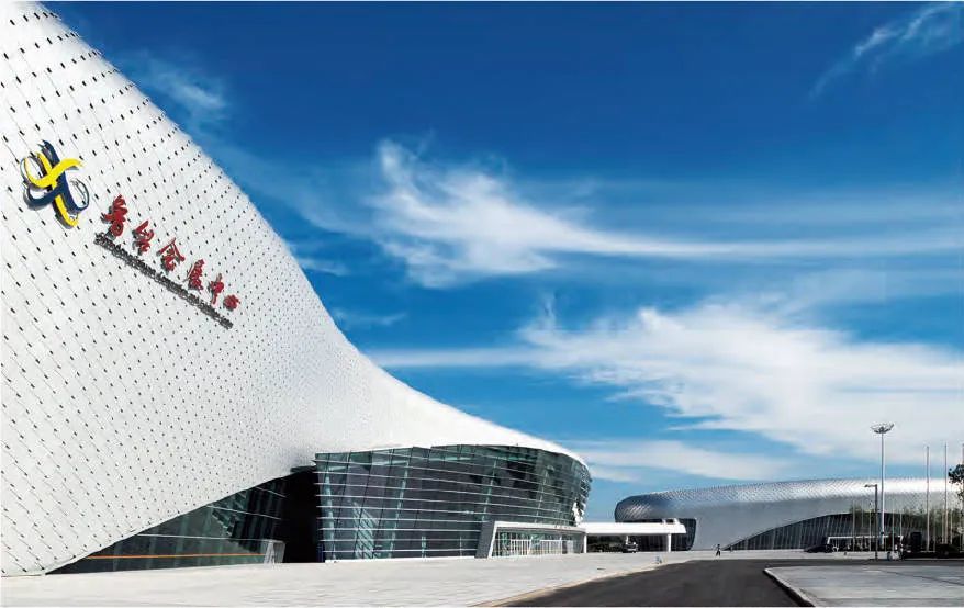 鲁台会展中心位于潍城区长松路以东,清平路以西,玉清西街以南,卧龙西街以北。工程总占地面积336亩,总建筑面积12万平方米,其中展览区10万平方米,会议区2万平方米。