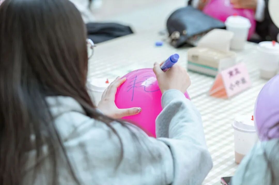 三月春光里,不惧微霜、奋进前行。此次活动我们展现了一个腹有诗书气自华的新时代女性形象,但人不应该被“固有印象”困住,在“吾日三省吾身”的同时,也要大胆撕掉被别人误解的标签。今天,我们一起“悦纳自己,重启新知”,老师们在气球上写上自己讨厌的标签,然后戳破它,撕破负面标签,重塑全新自己!