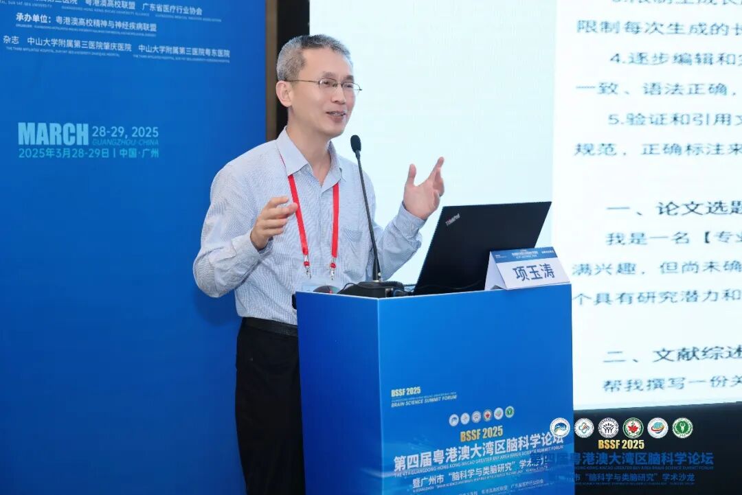 澳门大学健康科学学院项玉涛教授进行了《AI在临床护理科研中的应用--来自SCI期刊编辑的分享》的主题报告,他从高校教育及SCI期刊编辑的双重视角,分析Deepseek、ChatGPT等Al为临床(护理)科研带来的机遇与挑战,强调AI技术落地的伦理边界,同时也进行了应用Al辅助科研论文的实例分析。