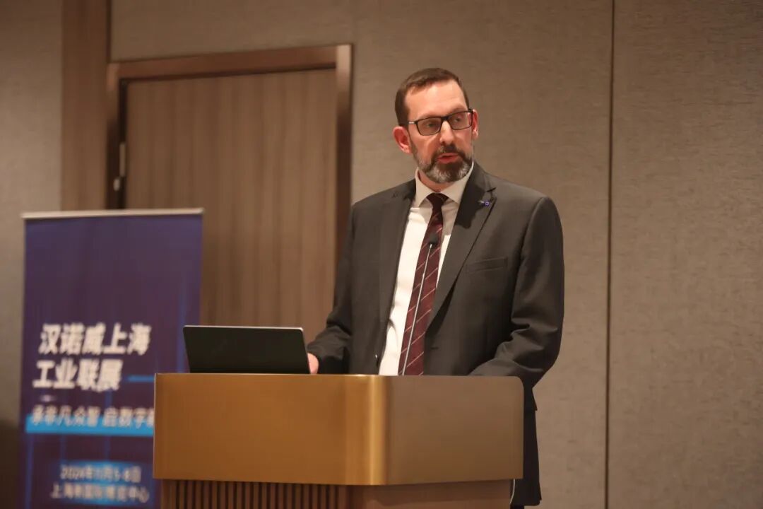 德国汉诺威展览公司高级副总裁Arno Reich分别于三场推介会上介绍了2024汉诺威工业博览会的展会情况。2024汉诺威工业博览会将于今年4月22-26日在德国汉诺威举行。本届展会以“为工业可持续发展注入活力”为主题,聚焦工业4.0、人工智能、5G、机械工程、电气工程和能源供应等最新产品和行业趋势。