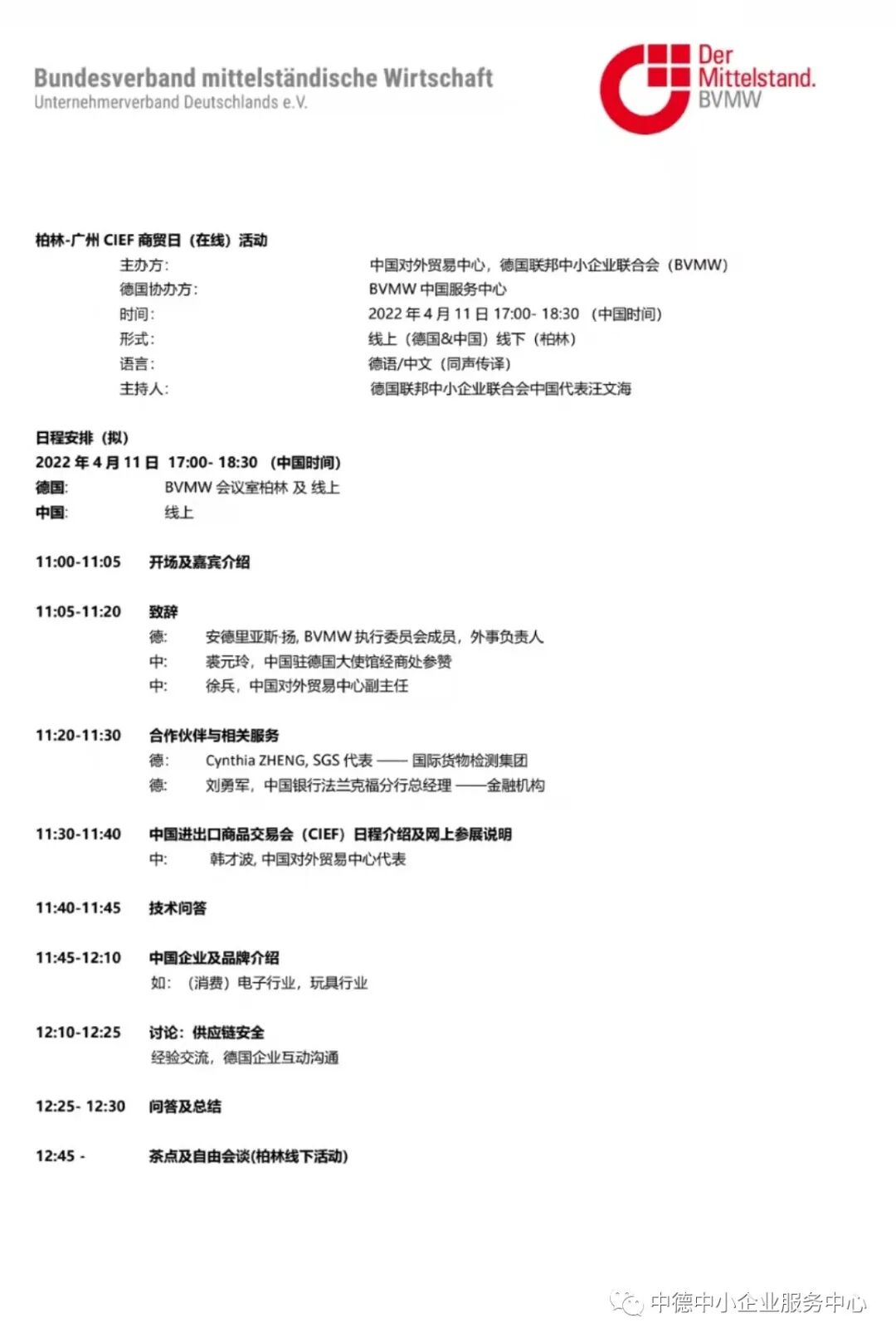 今年CFTC 携手合作伙伴德国联邦中小企业联合会BVMW,共同举办第131届广交会德国专场推介会活动,我们诚挚地邀请您参加: