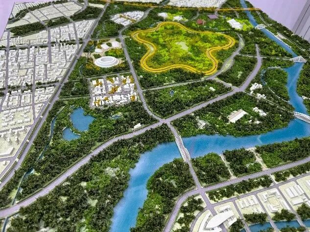在【高质量发展新篇】版块,展示了数字化技术赋能城乡建设的城市体检平台、产业招商平台,及京津冀协同发展等区域级系列规划,同时展出了北京城市副中心城市绿心模型。