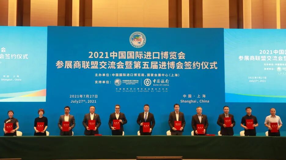 7月27日,在第四届进博会倒计时100天之际,2021进博会参展商联盟交流会暨2022进博会参展签约仪式在国家会展中心(上海)举办,进口博览局副局长刘福学主持会议。