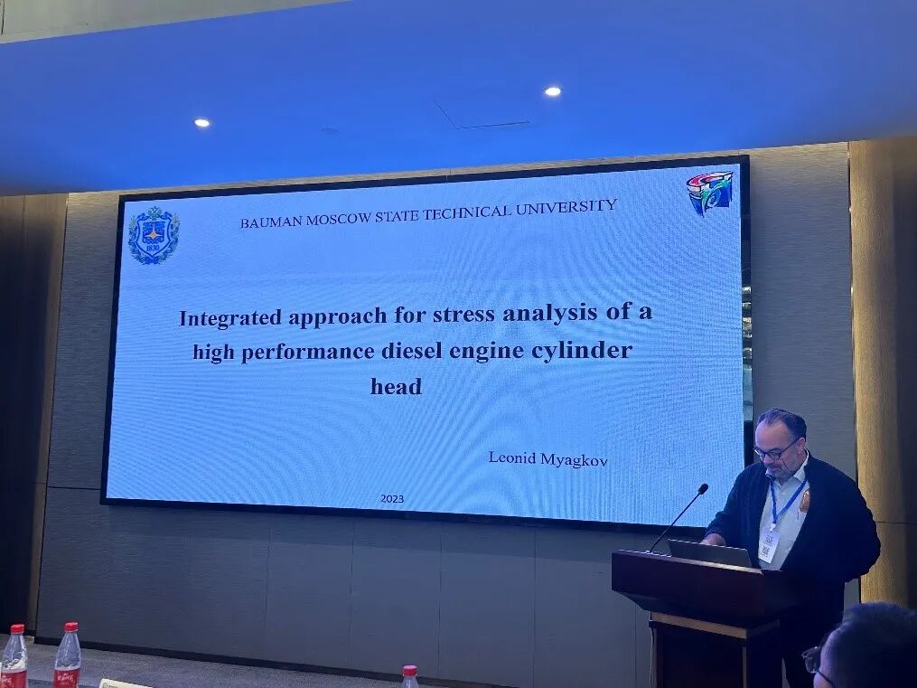 分会场二由中国北方发动机研究所张利敏研究员、东风汽车有限公司殷勇研究员、上海大学韦习成教授、北京理工大学胡晨星副研究员主持。华中科技大学杨灿副教授、北京理工大学贾博儒副教授、天津大学樊林浩助理研究员、重庆长安汽车股份有限公司闫博文博士、莫斯科鲍曼国立技术大学LeonidMyagkov教授分别就内燃机活塞瞬态温度无线实时测量技术及应用、自由活塞内燃发电技术及系统稳定控制策略、燃料电池膜电极仿真技术与优化设计、多火花点火对高稀释率混动发动机影响、活塞式发动机气缸应力分析等专题做特邀报告。