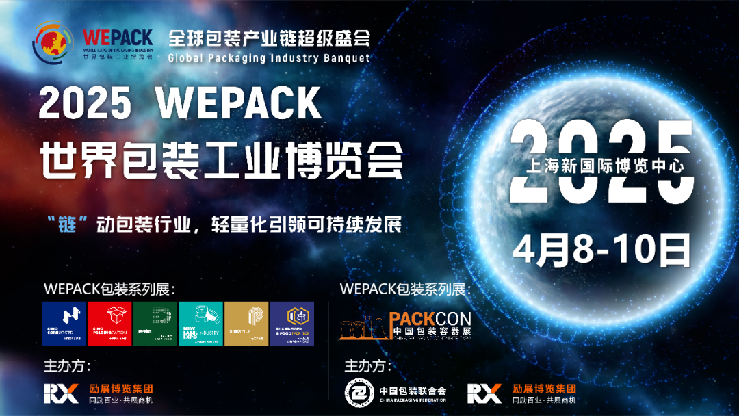 由励展博览集团主办的2025WEPACK世界包装工业博览会将于2025年4月8-10日在上海浦东新国际博览中心召开,届时2025中国国际瓦楞展、2025中国国际彩盒展、2025中国包装容器展、2025上海国际数字印刷技术展、2025上海国际纸展、2025植物纤维及食品包装制造技术展、2025上海国际新标签技术展七展同期举行,全面展示原纸原材料,包装加工设备,包装加工过程,以及包装制品的全新产品、技术和工艺。汇聚全球包装产业链核心力量,囊括瓦楞、彩盒、包装容器、纸张、数字印刷、食品包装加工、标签等全包装产业链供应商品牌,汇聚大量全球首发、亚洲首发等最新趋势性技术,高性价比产品等。
