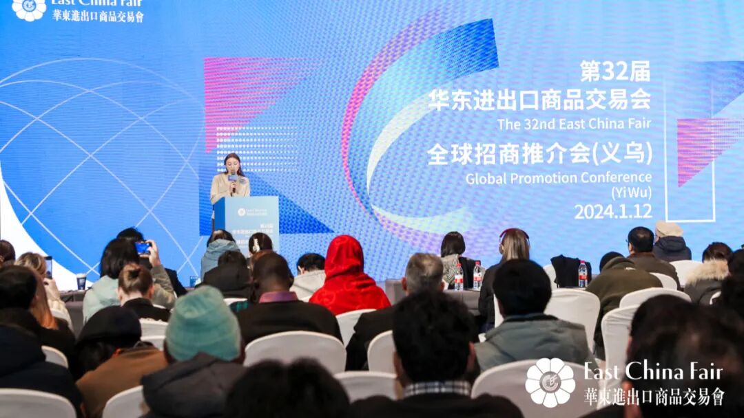 供稿:马怡雯编辑:龙彦霖2024年1月12日下午,第32届华东进出口商品交易会全球招商推介会在义乌成功举办。本次推介会邀请到了来自俄罗斯、乌克兰、摩洛哥、尼日利亚、孟加拉、泰国、苏丹、巴基斯坦、印度、也门、孟加拉国、土库曼斯坦、尼日尔、利比里亚、哈萨克斯坦等国家和地区的189位买家出席。上海华交会展经营服务有限公司总经理助理李晓烨女士对华交会基本情况进行了详细介绍并盛情邀请与会来宾参加2024年3月1—4日在上海新国际博览中心举办的第32届华交会。另外,推介会还邀请到了两位华交会的采购商与现场嘉宾分享他们参观华交会的经验和感受。本次推介会现场反响热烈,会后,已有推介会到会买家注册成为第32届华交会采购商。END第32届华交会举办时间: 2024年03月01日-04日第32届华东进出口商品交易会将于2024年3月1日至3月4日在上海新国际博览中心举办,设服装服饰展、纺织面料展、家庭用品展、装饰礼品展、境外展区和跨境电商展区,总规模12.65万平方米。第32届华交会采购商预登记注册流程①识别下方二维码,境内采购商验证手机号注册,境外采购商使用“邮箱+密码”注册;②填写基本信息,并完成调查问卷;③提交信息,完成注册。关于我们
