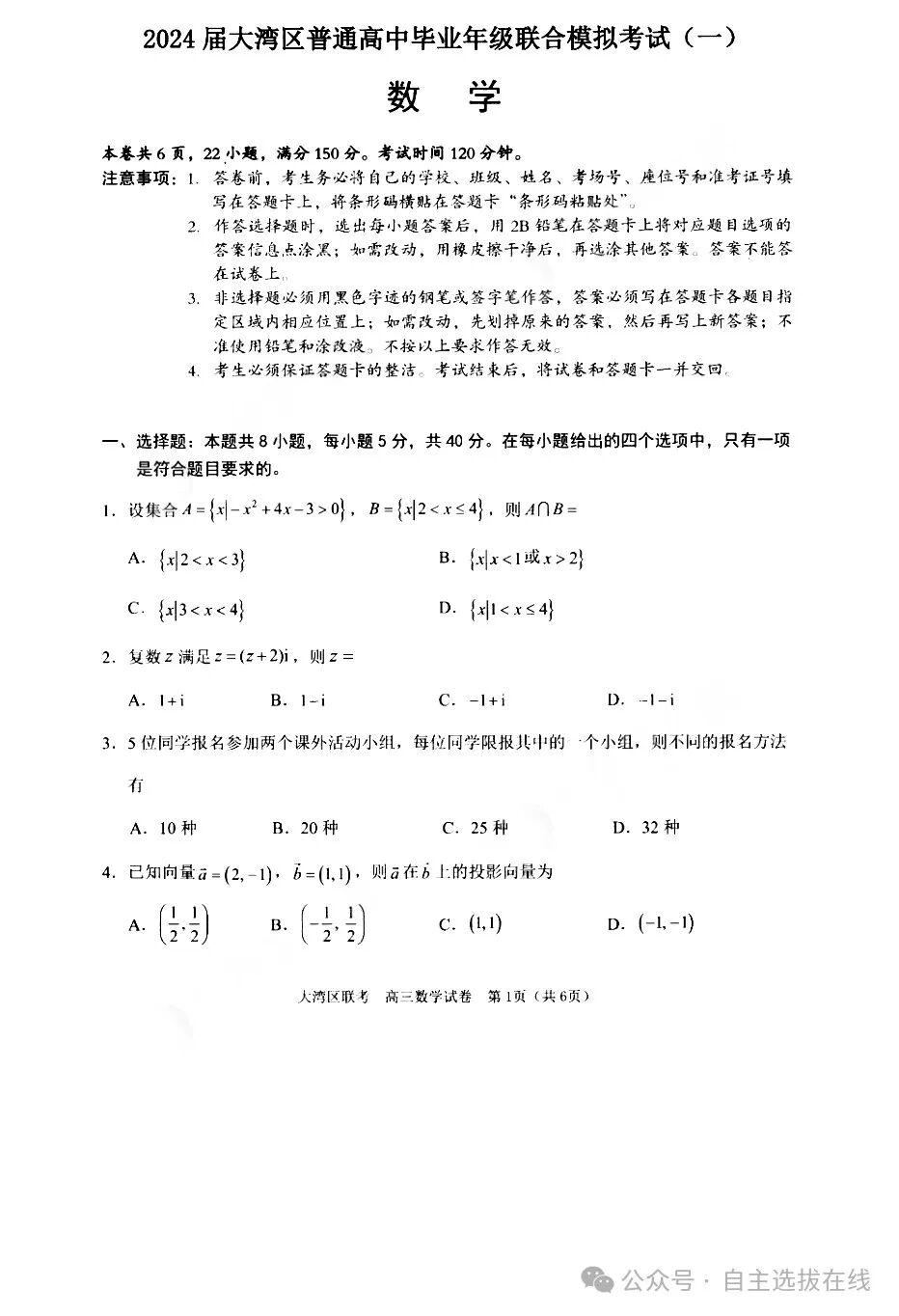 广东省大湾区2024届高三一模考试于近日开考。自主选拔在线团队整理了广东省大湾区2024届高三一模试题及答案汇总,供大家下载!