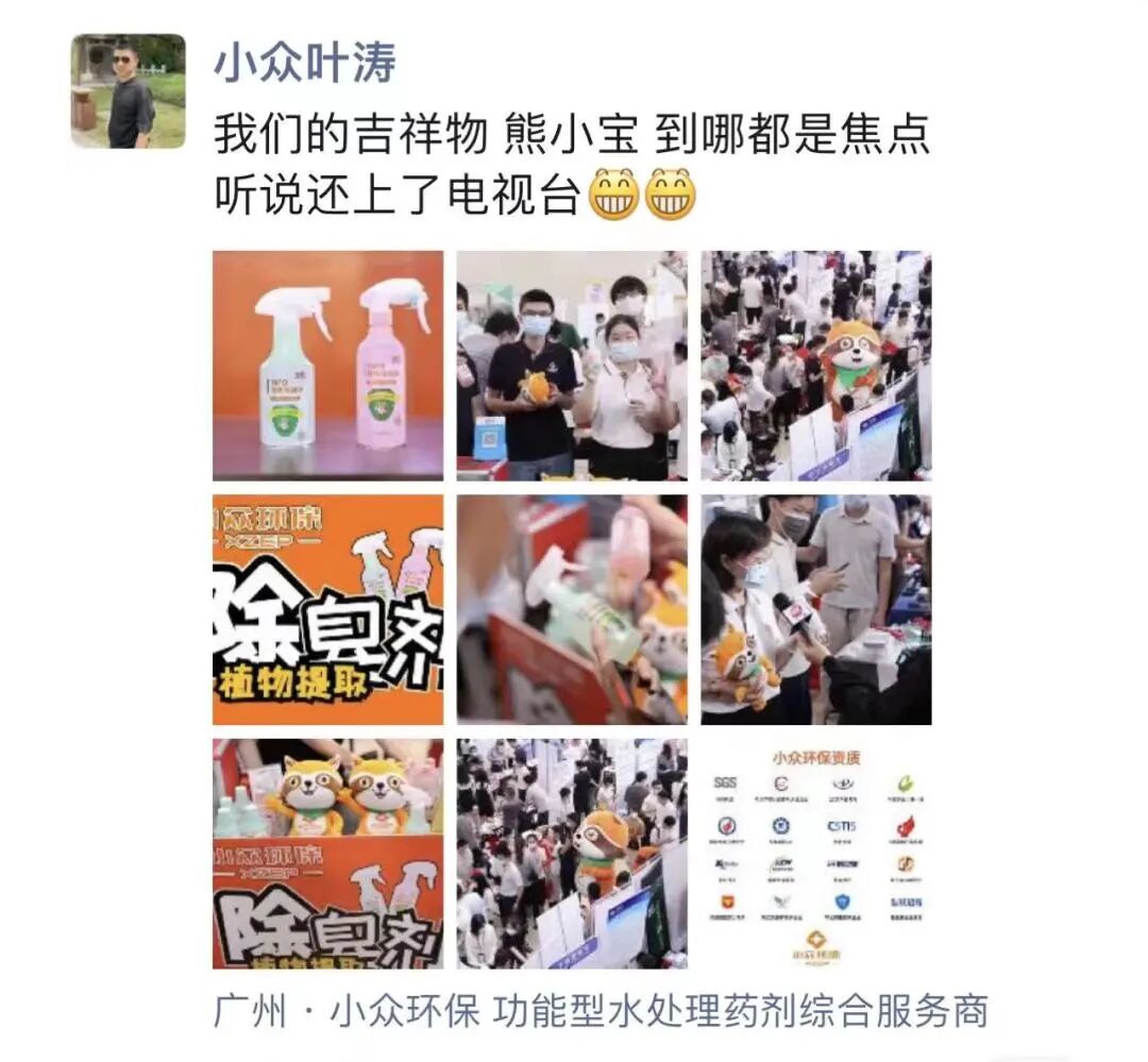 要说全场吸睛代表,莫过于广州小众环保科技有限公司的吉祥物——熊小宝,可谓是全场可爱担当。