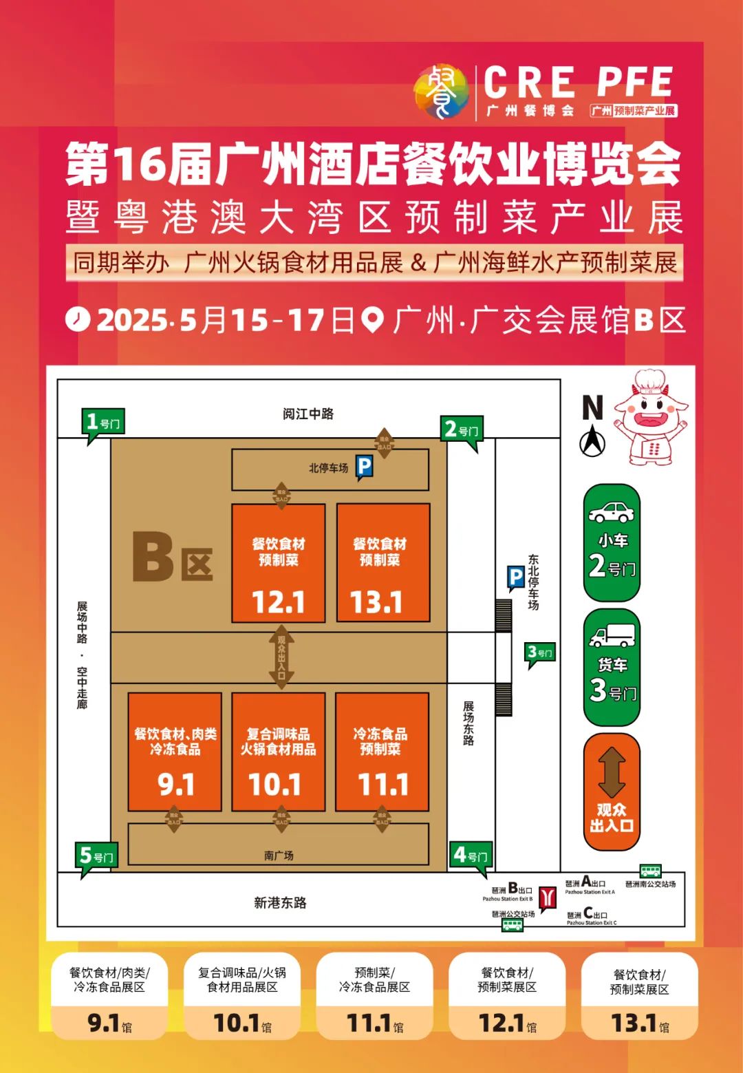 粤港澳大湾区餐饮食材行业风向标——CRE广州餐博会专注于开拓华南地区的餐饮市场,用低成本探索产品,寻找新机遇,为餐饮行业发展华南地区商贸合作提供一个分销、采购的专业化平台。CRE·2025第16届广州酒店餐饮业博览会暨粤港澳大湾区预制菜产业展(简称:CRE广州餐博会),同期举办:2025第16届中国(广州)火锅食材用品展、广州海鲜水产预制菜展、广州预制菜加工及包装机械设备展,将于2025年5月15-17日相聚广州·广交会展馆B区!邀请全球优质企业,携全球优选品牌再聚美食之都——羊城广州。