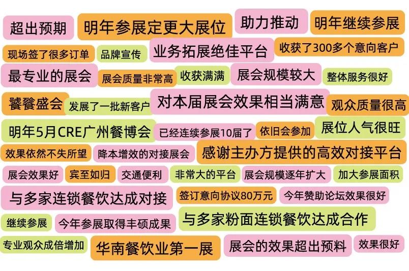 作为餐饮行业风向标盛会,CRE广州餐博会继2024第15届展会成功举办后,受到远超预期的市场反馈与反响,发展潜力不容小觑。2024第15届CRE广州餐博会现场观展超12万人次,全网曝光量实现“破亿”,现场交易、意向签约超16亿元,“高品质,超预期,有效果”,明年参展我们将要扩大规模,这是参展商给我们的反馈,对展会效果表达了超出其预期的赞赏。