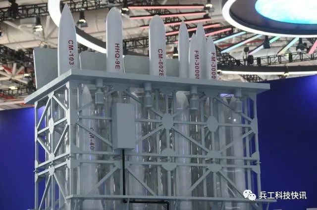 HT-1E型舰载通用垂直发射系统可垂直发射我国批准出口的各类导弹、鱼雷等弹药,从航展图片来看,国产新一代舰载垂直发射系统至少可以使用四种导弹,分别是CM-103舰载多用途导弹、HQ-9E远程舰空导弹、CM-802B反舰导弹和FM-3000N中近程舰空导弹。其中,FM-3000N中近程舰空导弹更是实现了“一坑四弹”。